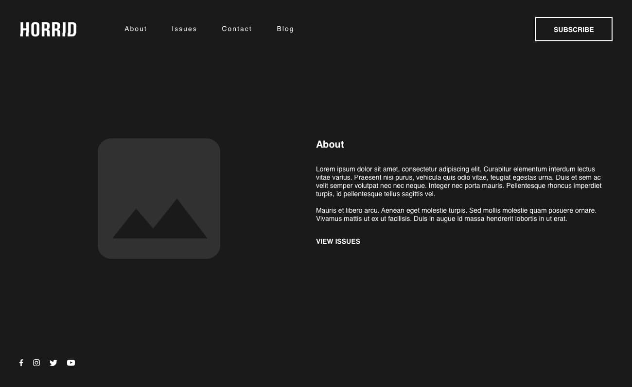 HORRID Magazine is a Denver based magazine that showcases dark art photography in a monthly printed zine. They needed a web solution that allowed users to purchase monthly and yearly subscriptions. Finding a solution to their problem was a bit of a challenge, but I was able to figure something out that has yielded some impressive results.